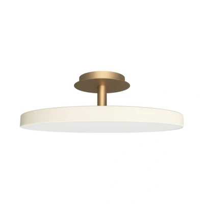 Lamp MastersAsteria UP PLUS LED ceiling light in pearl white with CCT switch, emitting light upwards and downwards The UMAGE Asteria UP PLUS LED ceiling lamp combines minimalist design with innovative lighting technology. Made from high-quality steel and designed in pearl white with brass accents, it blends harmoniously into various living areas such as the living room, dining room or kitchen. The integrated LED light source provides uniform and energy-efficient illumination, while the high colour rendering of 90 Ra ensures a natural and pleasant light quality. Thanks to the CCT function, the luminaire offers flexible adjustment options for the light colour between warm white (2,500 K, 2.700 K and 3,000 K) to suit different moods and requirements. Dimmability via an external dimmer also allows individual control of the brightness. Designed by renowned designer Søren Ravn Christensen, the Asteria UP PLUS combines timeless aesthetics with functional versatility.