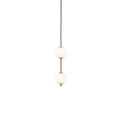Lights.coAudrey LED pendant light in brass finish with two opal glass spheres that shine all around The Audrey LED pendant light from UMAGE combines timeless design with functional lighting. Made of high-quality steel and glass, it captivates with its elegant combination of brass-coloured elements and opal white glass. The integrated LED light source provides a pleasant, warm white light with 2,700 K, creating a cosy atmosphere. With a colour rendering index of 90 Ra, colours are rendered particularly naturally and vividly – ideal for living rooms, dining rooms, bedrooms and kitchens. The 2-bulb light was designed by renowned designer Søren Ravn Christensen and impresses with its clear design language and versatility. Dimmability via an external dimmer allows flexible adjustment of the light intensity to create different moods. Audrey is not only a light source, but also a stylish design object that enhances any room.