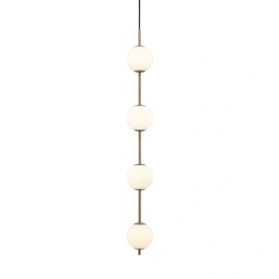 Brass-coloured Audrey LED pendant light with four opal glass spheres – elegance meets warm white light with high colour rendering