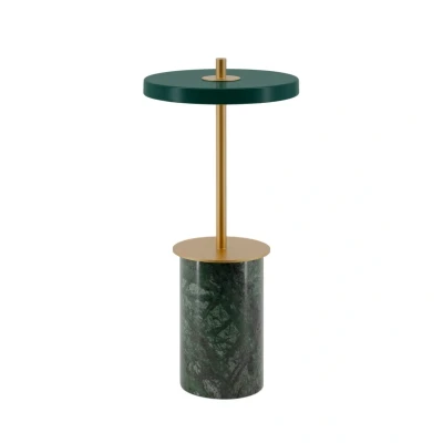 Lamp MastersAsteria Move Portable Table Lamp Mini Green Marble beautifully complements the other lamps in the aesthetic Asteria series with practical design and functionality in table lamp format. The lamp comes in two different versions and several beautiful colour variants, all of which are wireless so you can enjoy them in any room. The lamp is equipped with a built-in LED light source that emits a downward illumination that can be adjusted in four steps via the internal dimmer. This provides suitable lighting for any occasion, which combines beautifully with the wireless design that gives the lamp amazing flexibility. The Move Portable table lamp comes in two colour variants, polished steel and polished brass, depending on whether you prefer a modern or a more classic look. The lamp is also available in a Mini version with several beautiful colours and a matching marble base.