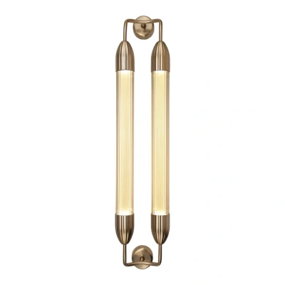 Lamp MastersThe Lemon Squeeze Wall Light Double Long Plated Brass from UMAGE is an elegant addition to your home. This wall light from UMAGE combines modern elegance with classic elements, making it a perfect choice for any interior. Made of metal, glass and plastic in a beautiful brass colour, the lamp measures 18.5 cm in width, 94.0 cm in height and 16.2 cm in depth. The unique Lemon Squeeze collection is known for its extruded glass with characteristic grooves that catch the light in a unique way. A diffuser tube in the centre ensures gentle and even lighting, creating a calm and harmonious atmosphere. The sculptural metal accents add a discreet sophistication with a touch of decorative charm. Designed by Søren Ravn Christensen, this lamp fits perfectly into any room, whether in the living room, hallway or for a cosy evening atmosphere..