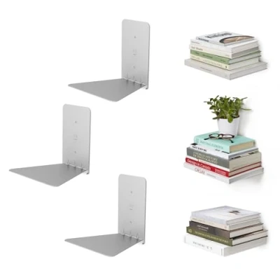 Umbra Conceal, Sturdy Metal Floating Bookshelf for Wall, Silver, Small, Set of 3