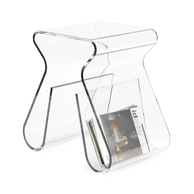 HIGHLY VERSATILE: Magino is an acrylic table that functions as a sturdy stool or clear side table with built-in magazine storage, but also works great as a side table IDEAL FOR SMALLER ROOMS: Magino’s clear acrylic design and compact dimensions won’t take up a lot of visual space or square footage – making it ideal for small space living such as condos and apartments THICK AND DURABLE: Magino measures 16½ x 17 x 11½ Inches and is made with ½-inch thick acrylic, making it durable and shatter resistant – perfect for use as a small end table or side table AWARD WINNING DESIGN: Magino Acrylic Stool was designed by Karim Rashid and won a Housewares Design Award in 2006 – there are many copies, but this is the original design made for Umbra MODERN ORIGINAL DESIGN FOR EVERY HOME: From reimagining the functionality of home essentials to creating innovative new decor, Umbra products add personality to your home. Don’t settle for copy-cat products. Choose Umbra and get the original.