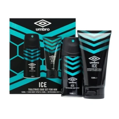 Looking for the perfect gift for the special man in your life? Look no further than the Umbro Ice Toiletries Duo Set! This set includes a deo body spray and a refreshing body wash, both with a refreshing scent. He'll love it!. 1 x Umbro Ice Toiletries Duo Set. Deo Body Spray 150ml. Refreshing Body Wash 150ml
