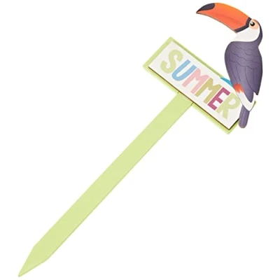 Decorative pin with "Summer" lettering Suitable for summer decoration of arrangements, flower pots, etc. Made of wood Size: Approx. 30 x 11 x 0.7 cm With tucan over the lettering