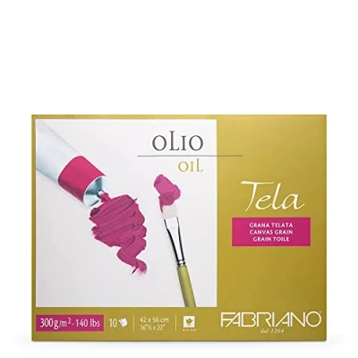 Unbekannt Fabriano Tela Card, Oil Painting Paper with Linen Texture, 300 g/m2, 42 x 56 cm, 10 Sheets, Block Glued on 4 Sides, Acid Free and Ageing Resistant, White