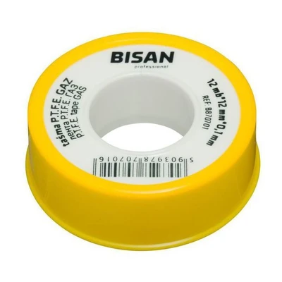 General description P.T.F.E Tape is used by plumbers and heating engineers to provide a watertight seal on threaded joints. This invaluable tape is an essential component when working on all types of pipework, helping to ensure that a watertight seal is achieved and maintained on all threaded joints. This effective tape is a must for every toolbox. Technical specifications Length: 12m Width: 12mm Thickness: 0.1mm Main purpose: Gas systems