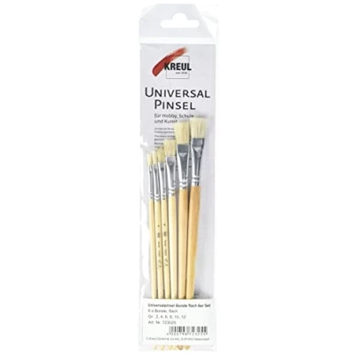 High-quality brush set consists of 6 flat bristle brushes specially designed for leisure and school use. . Contents: size 2, 4, 6, 8, 10 and 12, Manufacturer: Hobby Line