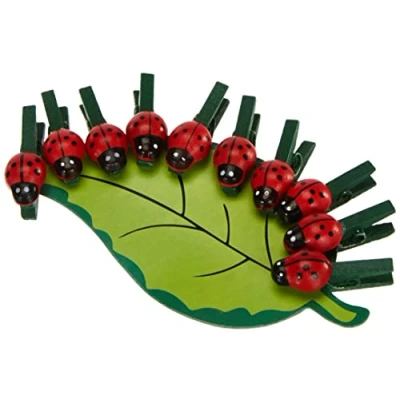 RAYHER HOBBY 8652300 Ladybird on Wooden Pegs 3 cm Tab Bag Pack of 12