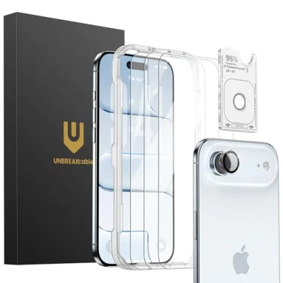 UNBREAKcable 3 Pack for iPhone 17 Air Screen Protector with Camera Protection, 9H Hardness, HD Clarity, Anti Fingerprint, Case Friendly, Tempered Glass + Lens Protectors 6.5 Inch