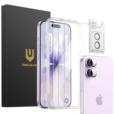UNBREAKcable 3 Pack for iPhone 17 Screen Protector with Camera Protection, 9H Hardness, HD Clarity, Anti Fingerprint, Case Friendly, Tempered Glass + Lens Protectors 6.3 Inch