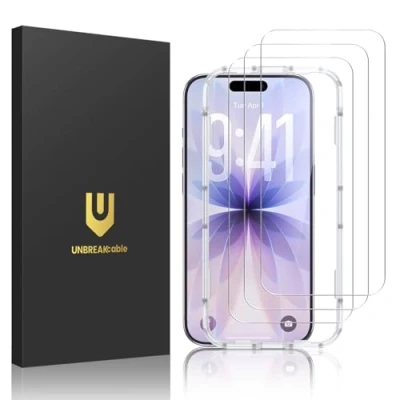 Perfect fit & Case Friendly: Designed for iPhone 17 6.3" (2025). These protectors are slightly smaller than the screen to avoid interfering with Face ID or the front camera, ensuring case compatibility and preventing bubbling. Clarity & Sensitivity: Our ultra-thin screen protector is 0.01 inches thick, nearly invisible, and offers 99.9% clarity. Enjoy a vibrant display with silky smooth touch sensitivity for quick, natural responses. Double Shatterproof Protection: Made from superior 9H tempered glass, this screen protector is twice as strong as standard. It resists scratches and survives drops from 6 feet (1.8 meters) with reinforced edges for exceptional safety. Bubble-Free & Anti-Fingerprint: The UNBREAKcable tempered glass screen protector uses auto-adsorption to eliminate bubbles and a plasma oleophobic coating to resist fingerprints and smudges. Enjoy a crystal-clear, easy-to-clean screen. Super-Easy Installation: This screen protector kit includes an installation frame, alcohol wipes, dust removal stickers and absorbers, a microfiber cloth, and a guide. Perfect alignment is effortless, even for beginners.