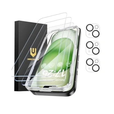 UNBREAKcable iPhone 15 Plus Screen Protector 3 Pack, Tempered Glass + Camera Lens Protectors, 9H Hardness, HD Clarity, Anti Fingerprint, Case Friendly, 6.7 Inch