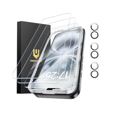 UNBREAKcable iPhone 16 Plus Screen Protector 3 Pack, Tempered Glass + Camera Lens Protectors, 9H Hardness, HD Clarity, Anti Fingerprint, Case Friendly, 6.7 Inch