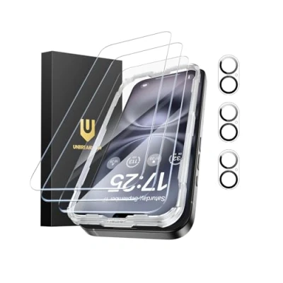 UNBREAKcable iPhone 16 Screen Protector 3 Pack, Tempered Glass + Camera Lens Protectors, 9H Hardness, HD Clarity, Anti Fingerprint, Case Friendly, 6.1 Inch