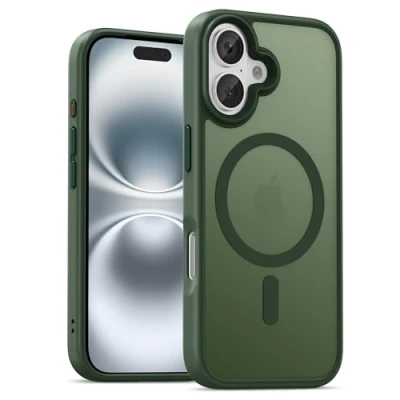 UNBREAKcable Magnetic for iPhone 16 Case 6.1 Inch, Compatible with MagSafe, Full Camera Protection, Built in Ring, Drop Protection Shockproof Slim Phone Cover Dark Green