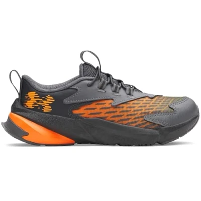 Under Armour Boys' Pre School Scramjet 7, Lightweight and Breathable Trainers for Kids, Sports Casual Wear,Anthracite / Jasper Blue Squad Orange,11.5