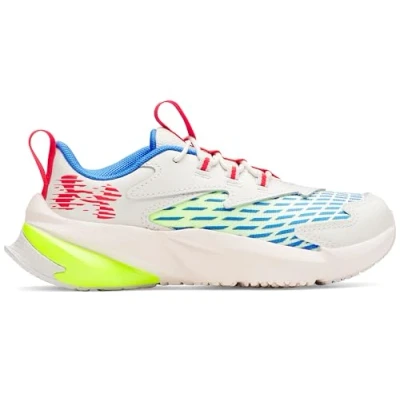 Under Armour Boys' Pre School Scramjet 7, Lightweight and Breathable Trainers for Kids, Sports Casual Wear,Summit White / High Vis Yellow Racer Red,11.5