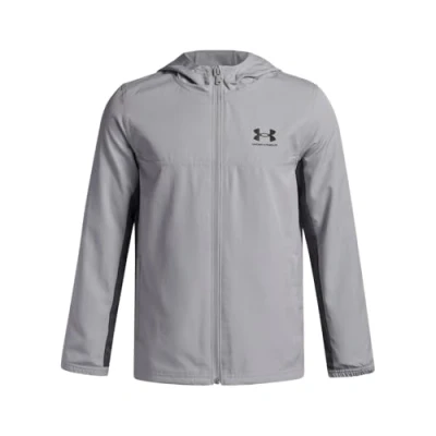 Under Armour Boys' Rival Woven Jacket, Water Repellent Tracksuit Top for Sprts, PE and Athletics, Lightweight Breathable Jacket,Mod Gray/Castlerock/Black,YMD
