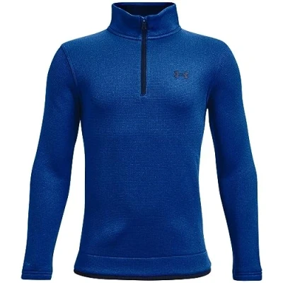 UA Storm technology repels water without sacrificing breathability Updated SweaterFleece fabric has soft, brushed interior with added stretch for complete mobility Ribbed details at bottom hem, cuffs & neck for elevated look & feel Generous ½ zip front makes for easy layering