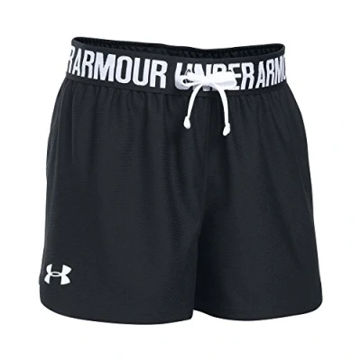 Under Armour Girls' Tech Play Up Short, Running Shorts with Shaped Hem and Open Hand Pockets, Breathable Fast Drying Gym Black, YS/JP/J CH