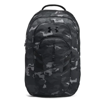 Under Armour UA Hustle 6.0 Backpack This backpack does it all It's water-repellent for the rain tough as nails comfortable as anything and has all the pockets you need to hold all your stuff Water-resistant UA Storm technology keeps your essentials dry Soft-to-the-touch top coat on material for added durability Soft-lined laptop sleeve—holds up to 16 MacBook Pro or similarly sized laptop Secondary compartment can be dual-purposed as a shoe/laundry pocket Secure zip front pocket for essential item storage&side water bottle pocket that fits 32oz bottle Molle webbing for additional attachment points Top grab handle Dimensions When Full: 6.6W x 20.1H x 12.6L