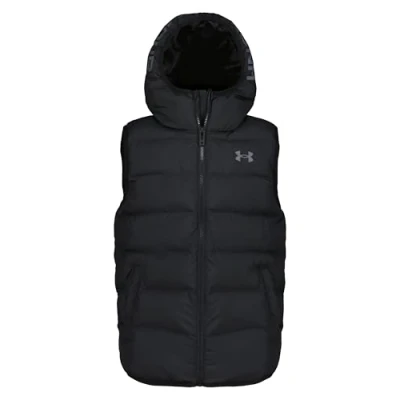 WARMER INSULATED BOYS’ PUFFER JACKET – Hand-stuffed insulation with allover quilting delivers reliable warmth in cold weather while staying lightweight. UA STORM TECHNOLOGY: WATER-REPELLENT & BREATHABLE – Repels water without sacrificing breathability, built to feel warm, dry and light in changeable conditions. SUPERIOR HOOD FIT & SECURE COMFORT – 3-piece hood construction plus binding at the hood, cuffs and hem helps seal in warmth and keep the fit neat on the move. HAND WARMER POCKETS WITH SECURE SNAP CLOSURE – Keep hands cosy and essentials secure on colder days with practical snap-close pockets. DURABLE & EASY CARE – Hard-wearing polyester shell and lining with screenprinted logos on chest and hood; machine washable at 30°C for fuss-free everyday wear.