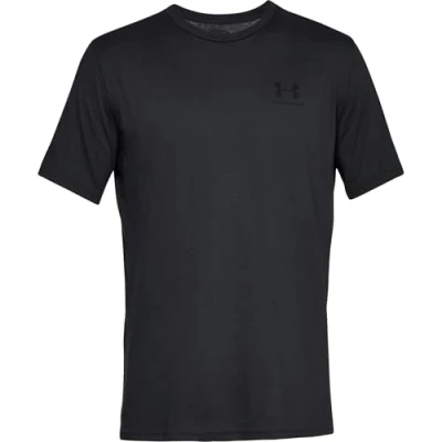 Secret SalesMens Under Armour Sportstyle Left Chest Short Sleeve T-Shirt in Black.- HeatGear fabric wicks sweat and regulates body temperature.- Charged Cotton® has the comfort of cotton but dries much faster.- 4-way stretch construction.- Crew neck.- Ribbed collar.- Short sleeves.- UA branding to left chest.- Loose: Fuller cut for complete comfort.- Shoulder to hem approx. 27 inch- 60% Cotton 40% Polyester. Machine Washable.- Ref: 1326799001Measurements are intended for guidance only.