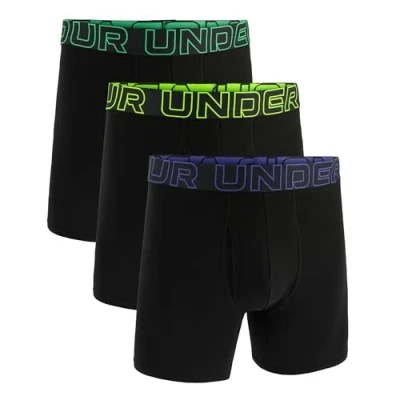 Under Armour Men's 3 Pack Performance Cotton Boxer Brief, 6" Inseam Breathable, Moisture Wicking, Soft Touch, All Day Comfort Black/Starlight