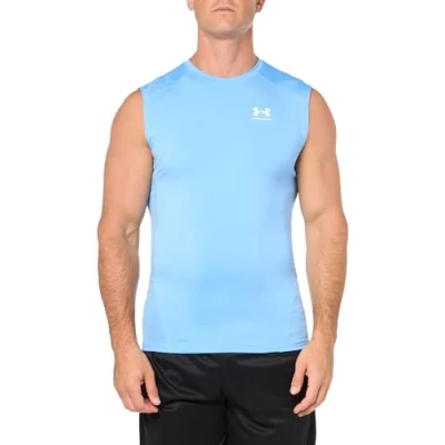 Under Armour Men's HeatGear Compression Sleeveless T Shirt, (475) Carolina Blue/White, M