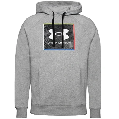 Mens Under Armour Rival Fleece Graphic Hoody in grey.- Drawcord-adjustable hood.- Long sleeves.- Front kangaroo pocket.- Lightweight ultra-comfortable cotton-blend fleece with brushed interior to keep you warm & comfortable.- Ribbed cuffs and hem.- Loose fit.- Body: 80% Cotton 20% Polyester. Hood Lining: 60% Cotton 40% Polyester.- Ref: 1370349011