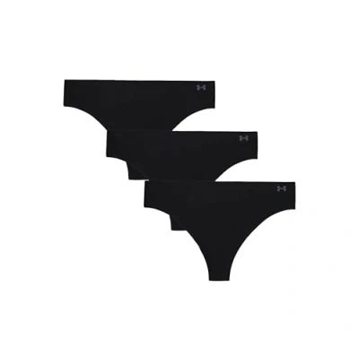 Under Armour Underwear PURE Stretch NO SHOW Thong Solid 3 PACK Thong, Women's, Size: Small, Black