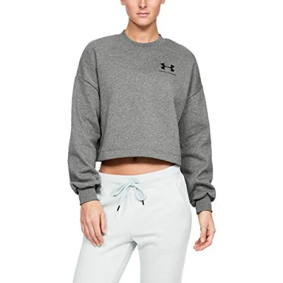 Under Armour Women Rival Fleece Graphic Lc Crew Warm up Top Jet Grey Medium Heather/Black, Large