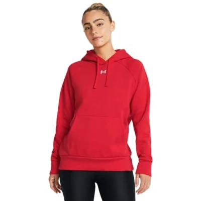 Under Armour Women's Rival Fleece Hoodie Hooded Sweatshirt, (601) Red / White, XXL