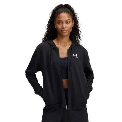 Under Armour Women's Rival Terry Full Zip, Warm and Comfortable Hoodie with Fast Drying Material, Ladies' Hooded Top for Sports Casual Wear,Black / White,XL