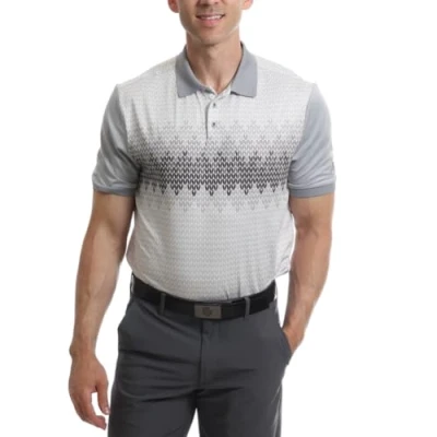Under Par Men's Printed Golf Pro Quality Polo Shirt, 2392 Grey, XL