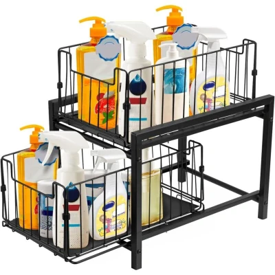 Under Sink Storage 2 Tier Pull Out Sliding Basket Cupboard Organiser Detachable Metal Organizer for Kitchen Storages & Bathroom
