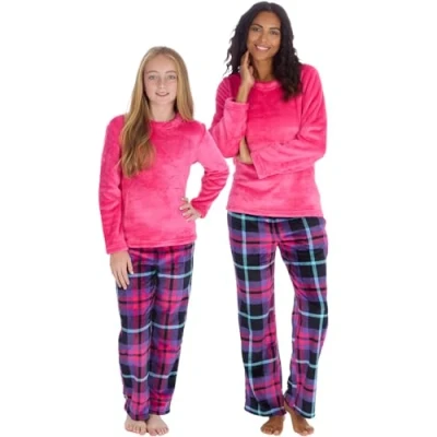 💜 Loungeable - Perfect for relaxing at home, these pyjamas puts maximum comfort and warmth at the forefront. Lounge in luxury with these super comfy sets - ideal for those lazy duvet days! 💜 Sizes - These pyjamas come in Womens sizes Small - 8/10, Medium - 12/14, Large - 16/18, XL - 20/22, and Kids sizes 3-4 Years, 4-5 Years, 5-6 Years, 7-8 Years, 9-10 Years, 11-12 Years and 13 Years. 💜 Matching Styles - Supersoft polished fleece long pyjamas that are designed to keep you warm and cosy this cold season. These pyjamas come in adults and kids sizes so you can have matching sets. 💜 Snuggly Material - Made from ultra-soft fleece (100% Polyester). The fabric benefits from being soft to the touch, durable, warm and easy to care for. 💜 Perfect Gift Idea - Ideal present for birthdays, Christmas or why not treat yourself to one of these comfy sets.
