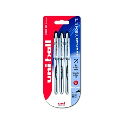 Uni ball 153486350 UB 200 Vision Elite Medium Rollerball Pens, 0.8mm Ball, Black Gel, 3 Pack
