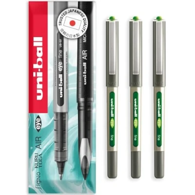 uni ball EYE UB 157 Rollerball Pens 0.7mm Nib In Gift Box Packaging (Pack of 3, Light Green)