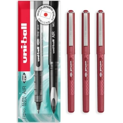 uni ball EYE UB 157D Liquid Ink Rollerball Pens 0.7mm Nib In Gift Box (Pack of 3, Red)