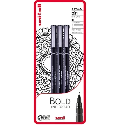 uni ball PIN Fineliners, Black Fine Tipped Writing Pens, Water and Fade Resistant Ink, Ideal for Architects, Sketching, Scrapbooking, Outlining, Art, Technical Drawing, Archival Quality, Pack of 3