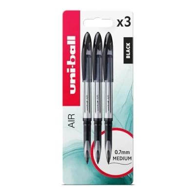 Uni ball UB 188 L Air Rollerball Pens. Premium 0.7mm Medium Nib for Super Smooth Handwriting. Writes Like a Fountain Pen. Fade and Water Resistant Liquid Ink. Pack of 3 Black Ballpoint Pens