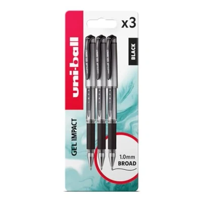 BROAD TIP PRECISION: 1 mm broad tip delivers bold, clear lines with exceptional visibility, perfect for impactful writing. SMOOTH GEL PERFORMANCE: Fast-flowing gel ink ensures skip-free, consistent writing ideal for extended use in exams and professional settings. ERGONOMIC DESIGN: Thoughtfully crafted barrel reduces hand fatigue during long writing sessions, offering superior comfort. WATER-RESISTANT INK: Special ink formulation resists water damage and fading, protecting your important documents and notes. VERSATILE 3-PACK SET: Reliable writing performance for multiple applications including note-taking, coursework, and professional documentation.