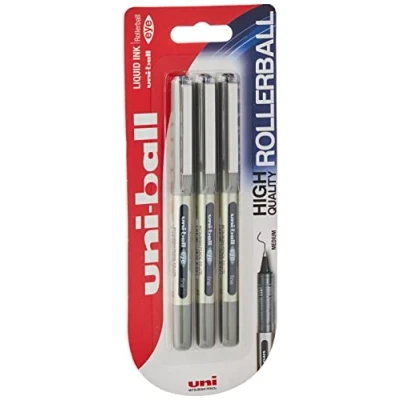 The World's favorite rollerball ink pen for 20 years, black ink pens in a pack of 3 Filled with Uni-Ball Super Ink, an advanced ink formula that bonds to paper fibers, fade resistant, water resistant, and acid free, resistant to chemicals that wash dye-based ink from checks Unique ‘Uni-Flow’ system ensures ink flows consistently to give you a smooth writing experience down to the last drop – so there’s no need to worry about the pen jamming or ink suddenly running out Bold, 0.7mm nib creates a fine, 0.5mm line that will work great for note taking or general writing, capped top stays put and ensures that this pen will never leak in your pocket Stainless steel tip with tungsten carbide ball ensures that this pen will never break when you need it the most