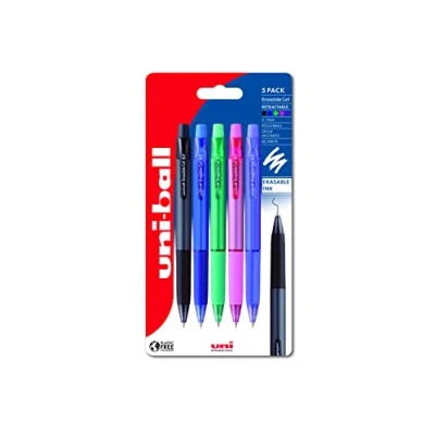 uni ball URN 181 07 Erasable Rollerball Gel Pens. Premium 0.7mm Ballpoint Tip for Super Smooth Writing, Drawing & Colouring. Easy Retract Eraser Secure and Stable Rubbing Out Pack of 5 multicolour