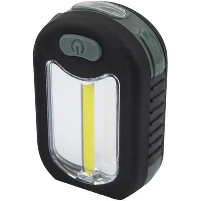 General description This handy 2 in 1 Uni-Com Multi Light is ideal for DIY, camping, or general use around the home. It features a powerful 3W COB LED Work Light combined with a high power 3 LED torch. The light can be used hand-held, free-standing using the integrated stand, or hanging using the built-in hanging hook or powerful magnet. Technical specifications Power: 3W COB LED Light source: 3 LED torch Battery type: 3 x AAA (included) Size: 95 x 60 x 33 mm Weight: 103 g Usage To operate the multi light, simply press the button on the front to cycle through the light settings: LED Torch on, COB light high, COB light low, off.