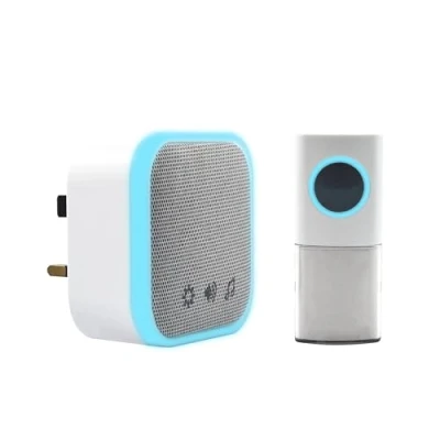 Wireless, Plug-in & 150 Range – This Door Chime simply plugs into any 13A socket, there is no wiring needed, making installation quick and easy. With a reliable signal transmission of up to 150m, you can plug this door chime in anywhere around your home ensuring you never miss a visitor or delivery again. Compatible with all other Wireless + Uni-Com door chimes. Flashing LED Alert - The flashing blue light indicator ensures you’re alerted visually when the doorbell is pressed. This is ideal for noisy environments and for those with hearing impairments. 30 Different Melodies & Powerful Sound Output with Volume Control - This door chime has a powerful 90dB(A) sound output with volume control and 30 different melodies to choose from, ensuring you always hear when someone is at your door, no matter where you are around your home. Multiple operating modes - You can easily select from 3 operating modes - Chime sound only, flashing blue LED alert only, or both sound and light together, so you can set your door chime to operate exactly as you want it to. Water Resistant & Reliable – The bell push with blue LED indicator and nameplate is IP44 water resistant rated, providing better protection from rainfall and splashing water. It is powered by 1 x CR2032 button cell battery (supplied) reducing the frequency of battery replacement., Weight: 0.330693393 pounds, Manufacturer: Uni-Com