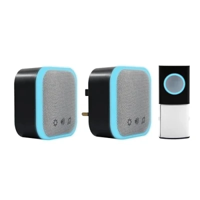 Uni Com Wireless Portable & Plug in Door Chime Set, 150m Operating Range, 30 Different Chimes, LED Alert, Easy Install, Black
