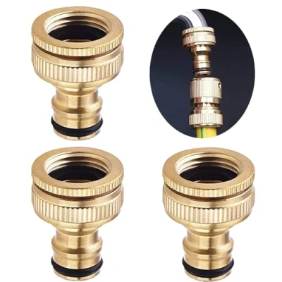 Uni Fine 3 Pieces 1/2 Inch & 3/4 2 in 1 Garden Hose Quick Connector Brass End Nozzle Connect Kit for Kitchen Outdoor Pipe Tool
